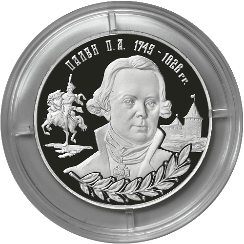 С 26 июля 2019 года в обращение вводится памятная серебряная монета Приднестровского республиканского банка достоинством 10 рублей «Генерал от кавалерии Пален П.А.» серии «Выдающиеся русские полководцы и военачальники в истории Приднестровья». Памятная монета является денежным знаком Приднестровского республиканского банка, выступает средством обращения и платежа на территории Приднестровской Молдавской Республики и принимается по ее номинальной стоимости. Каждая монета имеет идентификационный сертификат (паспорт), упакована в прозрачную капсулу и представлена в футляре. Характеристика монеты:
