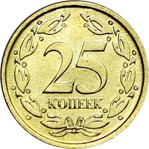 в центре отчеканена цифра «25», обрамленный стилизованным лавровым венком; под номиналом – надпись «копеек».
