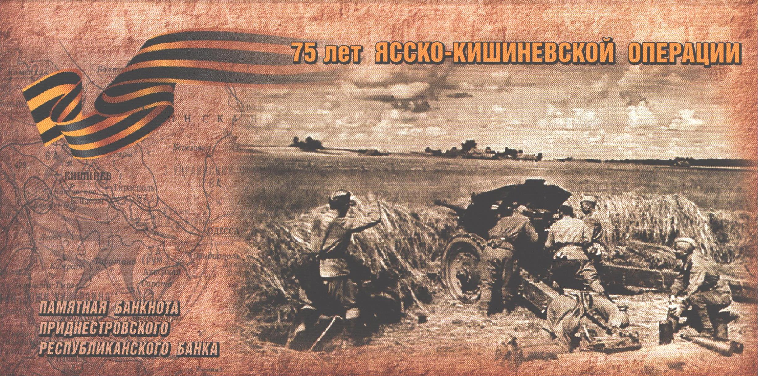 Памятные банкноты Приднестровского республиканского банка «75 лет Ясско-Кишинёвской операции» являются законным средством обращения и платежа на территории Приднестровской Молдавской Республики, обязательны к приему по нарицательной стоимости во все виды платежей всеми организациями независимо от формы собственности и сферы деятельности.