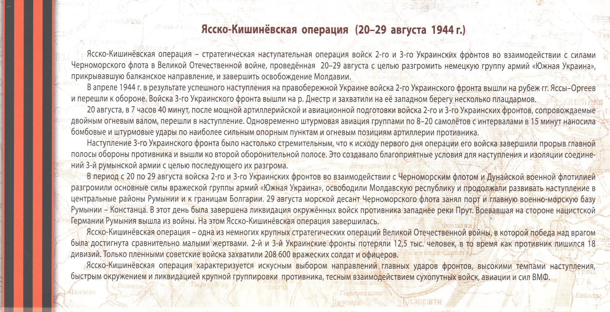 С 20 августа 2019 года в обращение вводятся памятные банкноты номиналом 1 рубль «75 лет Ясско-Кишинёвской операции».