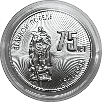 Аверс монет: в центре – изображение Государственного герба Приднестровской Молдавской Республики; по кругу – надписи: вверху – «ПРИДНЕСТРОВСКИЙ РЕСПУБЛИКАНСКИЙ БАНК», внизу – «25 РУБЛЕЙ»; в нижней части под гербом – «2020». Реверс монеты: в центре на фоне лучей солнца – изображение монумента «Воин-освободитель», справа от него – надпись «75 ЛЕТ», вверху по кругу – надпись «ВЕЛИКОЙ ПОБЕДЕ», внизу по кругу – надпись «1941-1945». Памятные монеты Приднестровского республиканского банка из недрагоценных металлов образца 2020 года являются законным средством обращения и платежа на территории Приднестровской Молдавской Республики, обязательны к приему по нарицательной стоимости во все виды платежей всеми организациями независимо от формы собственности и сферы деятельности. |