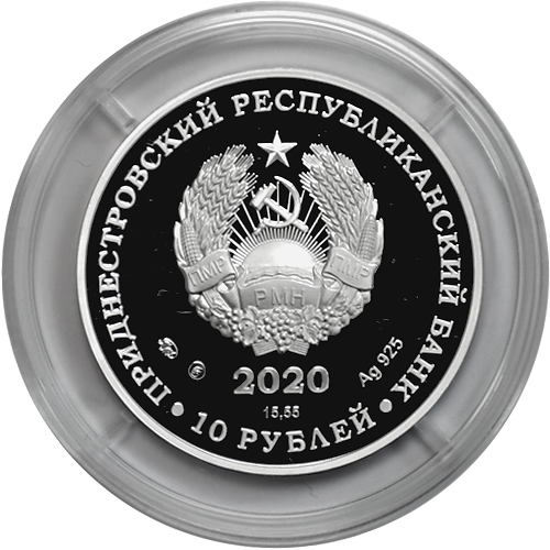 Описание монеты: Аверс монеты: в центре – изображение Государственного герба Приднестровской Молдавской Республики; по кругу – надписи: вверху – «ПРИДНЕСТРОВСКИЙ РЕСПУБЛИКАНСКИЙ БАНК», внизу – «10 РУБЛЕЙ»; в нижней части под гербом – год выпуска монеты «2020», ниже – содержание химически чистого металла в граммах, слева – логотип изготовителя, государственное пробирное клеймо, справа – обозначение металла, проба сплава. Реверс монеты: слева – стилизованное изображение воина в форме русской армии XVIII века на фоне Бендерской крепости, справа – герб российской империи – двуглавый орёл; вверху – надпись «250 ЛЕТ», внизу – надпись «ВЗЯТИЯ БЕНДЕРСКОЙ КРЕПОСТИ РУССКИМИ ВОЙСКАМИ». |