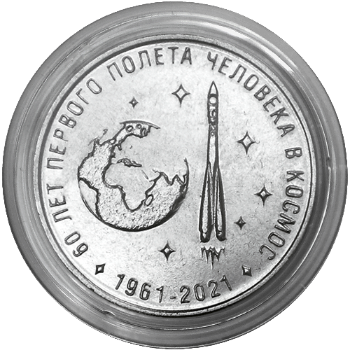 С 12 апреля 2021 года вводятся в обращение памятные монеты Приднестровского республиканского банка из недрагоценных металлов достоинством 25 рублей «60 лет первому полёту человека в космос» серии «Освоение космоса». Памятные монеты являются денежными знаками Приднестровского республиканского банка, выступают средством обращения и платежа на территории Приднестровской Молдавской Республики и принимаются по их номинальной стоимости. Характеристика монеты:
