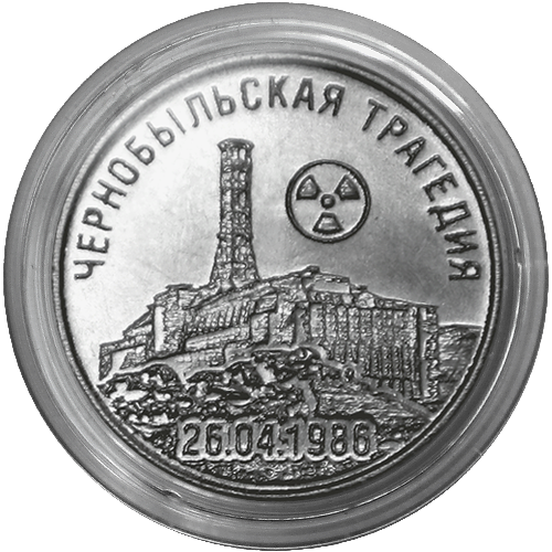 Описание монеты: Аверс монеты: в центре – изображение Государственного герба Приднестровской Молдавской Республики; по кругу – надписи: вверху – «ПРИДНЕСТРОВСКИЙ РЕСПУБЛИКАНСКИЙ БАНК», внизу – «25 РУБЛЕЙ»; в нижней части под гербом – «2021». Реверс монеты: в центре – изображение здания энергоблока Чернобыльской атомной электростанции, над ним знак радиоактивной опасности; вверху – по кругу надпись «ЧЕРНОБЫЛЬСКАЯ ТРАГЕДИЯ»; внизу – надпись «26.04.1986». |