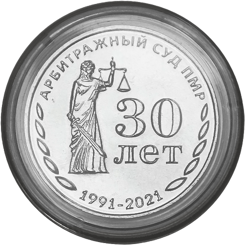 С 21 сентября 2021 года вводятся в обращение памятные монеты Приднестровского республиканского банка из недрагоценных металлов достоинством 25 рублей «30 лет со дня образования Арбитражного суда ПМР» серии «Государственность Приднестровья». Памятные монеты являются денежными знаками Приднестровского республиканского банка, выступают средством обращения и платежа на территории Приднестровской Молдавской Республики и принимаются по их номинальной стоимости. Характеристика монет: