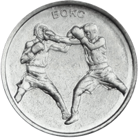 Описание монеты: Аверс монеты: в центре – изображение Государственного герба Приднестровской Молдавской Республики; по кругу – надписи: вверху – «ПРИДНЕСТРОВСКИЙ РЕСПУБЛИКАНСКИЙ БАНК», внизу – «2021»; в нижней части под гербом – номинал «1 РУБЛЬ». Реверс монеты: в центре – изображение двух боксёров в момент боя; вверху – надпись «БОКС». |