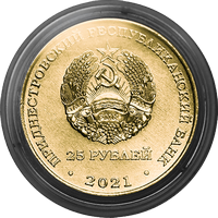 Описание монет: Аверс: в центре – изображение Государственного герба Приднестровской Молдавской Республики; по кругу – надписи: вверху – «ПРИДНЕСТРОВСКИЙ РЕСПУБЛИКАНСКИЙ БАНК», внизу – «2021»; в нижней части под гербом – номинал «25 РУБЛЕЙ». Реверс: разделён на четыре сектора: вверху: слева – надпись в четыре строки «30 ЛЕТ БАНКУ ПРИДНЕСТРОВЬЯ», справа – надпись в три строки «22 декабря 1992 года»; внизу: слева – изображение логотипа Приднестровского республиканского банка, справа – стилизованное изображение слитков драгоценных металлов. |