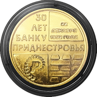 16 декабря 2022 года в обращение вводятся памятные монеты из недрагоценных металлов достоинством 25 рублей «30 лет Приднестровскому республиканскому банку» серии «Памятные даты и события Приднестровья». Памятные монеты являются денежными знаками Приднестровского республиканского банка, выступают средством обращения и платежа на территории Приднестровской Молдавской Республики и принимаются по их номинальной стоимости. Памятные монеты выполнены в двух вариациях – с покрытием золотом и серебром.
