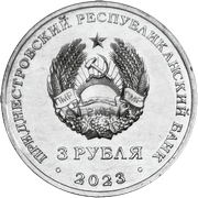 Аверс монет: в центре – изображение Государственного герба Приднестровской Молдавской Республики; по кругу – надписи: вверху – «ПРИДНЕСТРОВСКИЙ РЕСПУБЛИКАНСКИЙ БАНК», внизу – год выпуска монеты «2023»; в нижней части под гербом – номинал «3 РУБЛЯ».